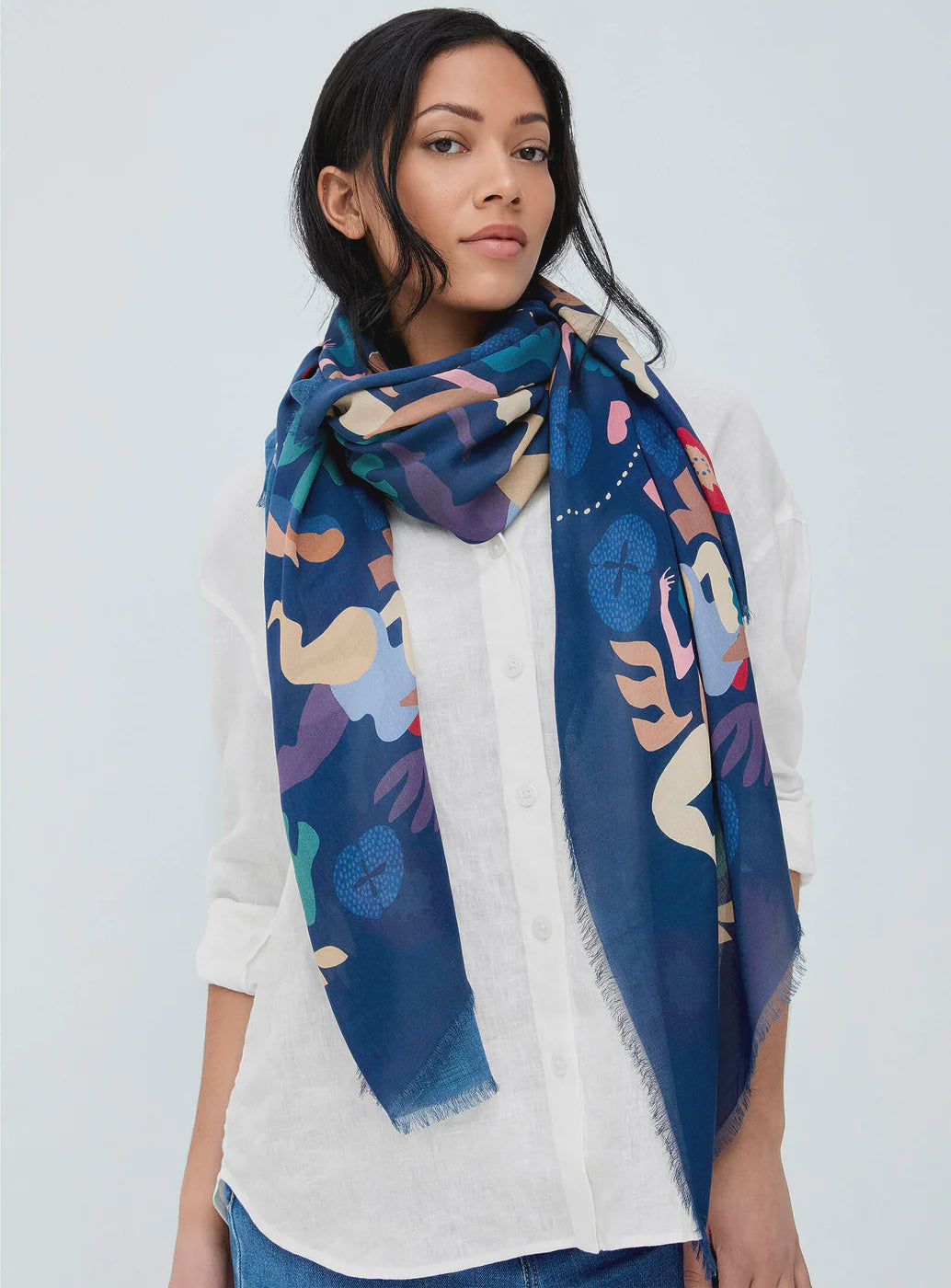 Constructed from 100% modal, this oversized scarf boasts unmatched softness and graceful draping, making it the perfect accessory for any season. Available in a chic navy blue, this shawl effortlessly complements any outfit. At a generous 36" x 72" in size, it offers limitless versatility and effortless elegance.