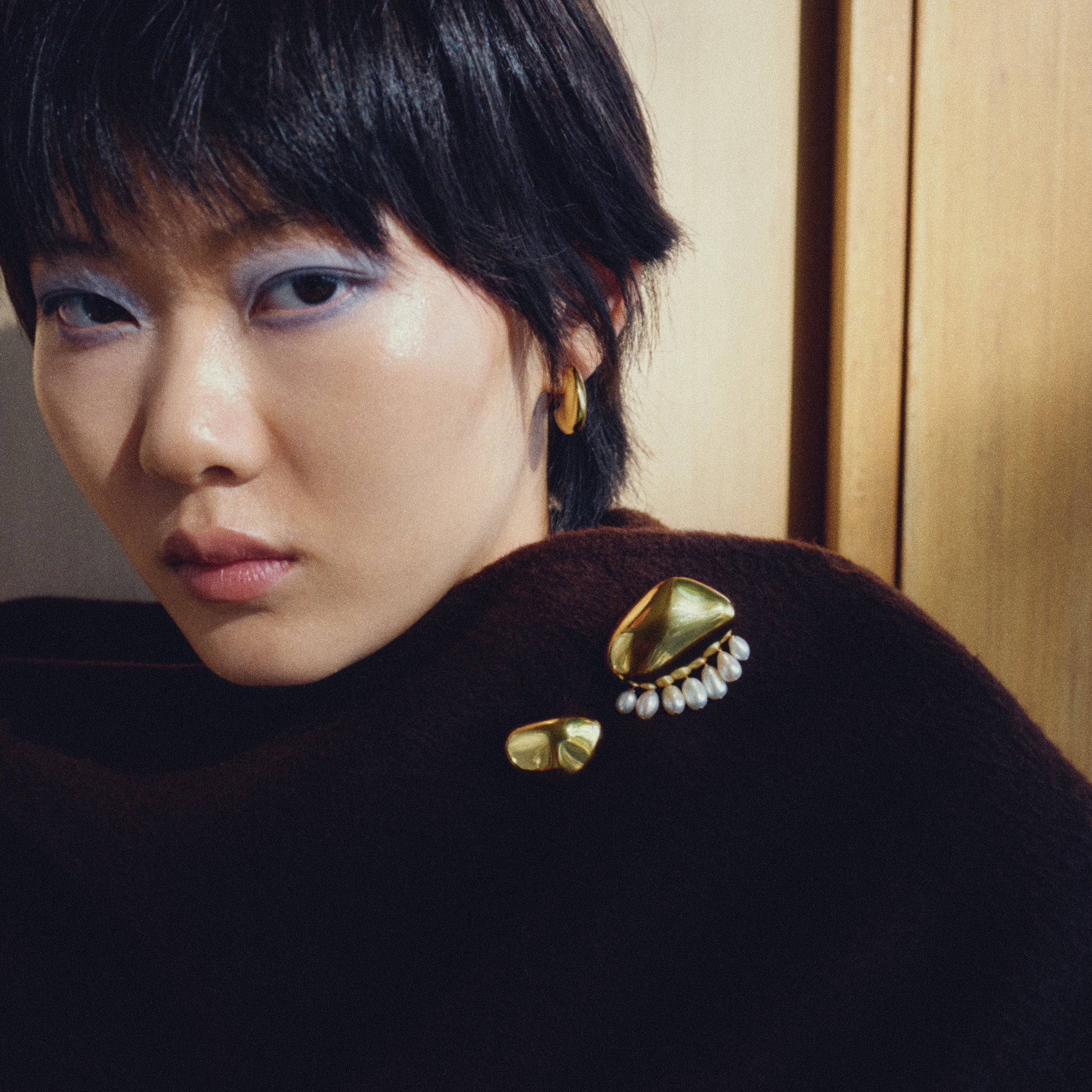 The Effie Brooch is a sculptural keepsake, cast from a pebble found on Corrine’s grandmother’s village beach in Greece. Minimal and organic in form, it embodies nostalgia, quiet strength, and timeless simplicity. A luminous accent for a jacket, scarf, wrap, or lapel, and a wearable memory to treasure. Style it solo, or alongside the Nisi Pearl Brooch for added impact.