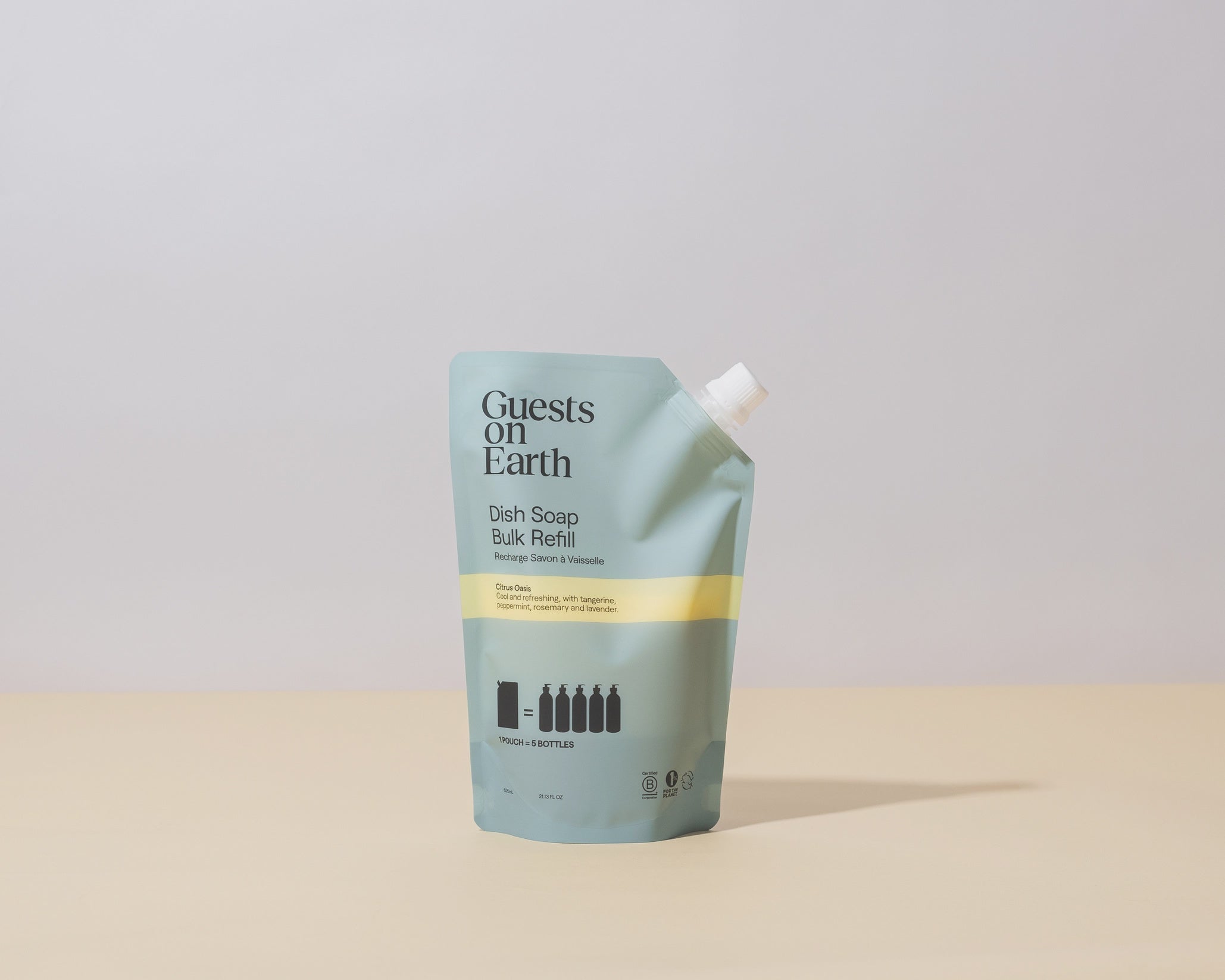 The Guests on Earth Dish Soap Refill in Citrus Oasis is a plant-based, eco-conscious essential for everyday dishwashing. It is made in Canada and available at our Sudbury boutique and online delivering across Canada.