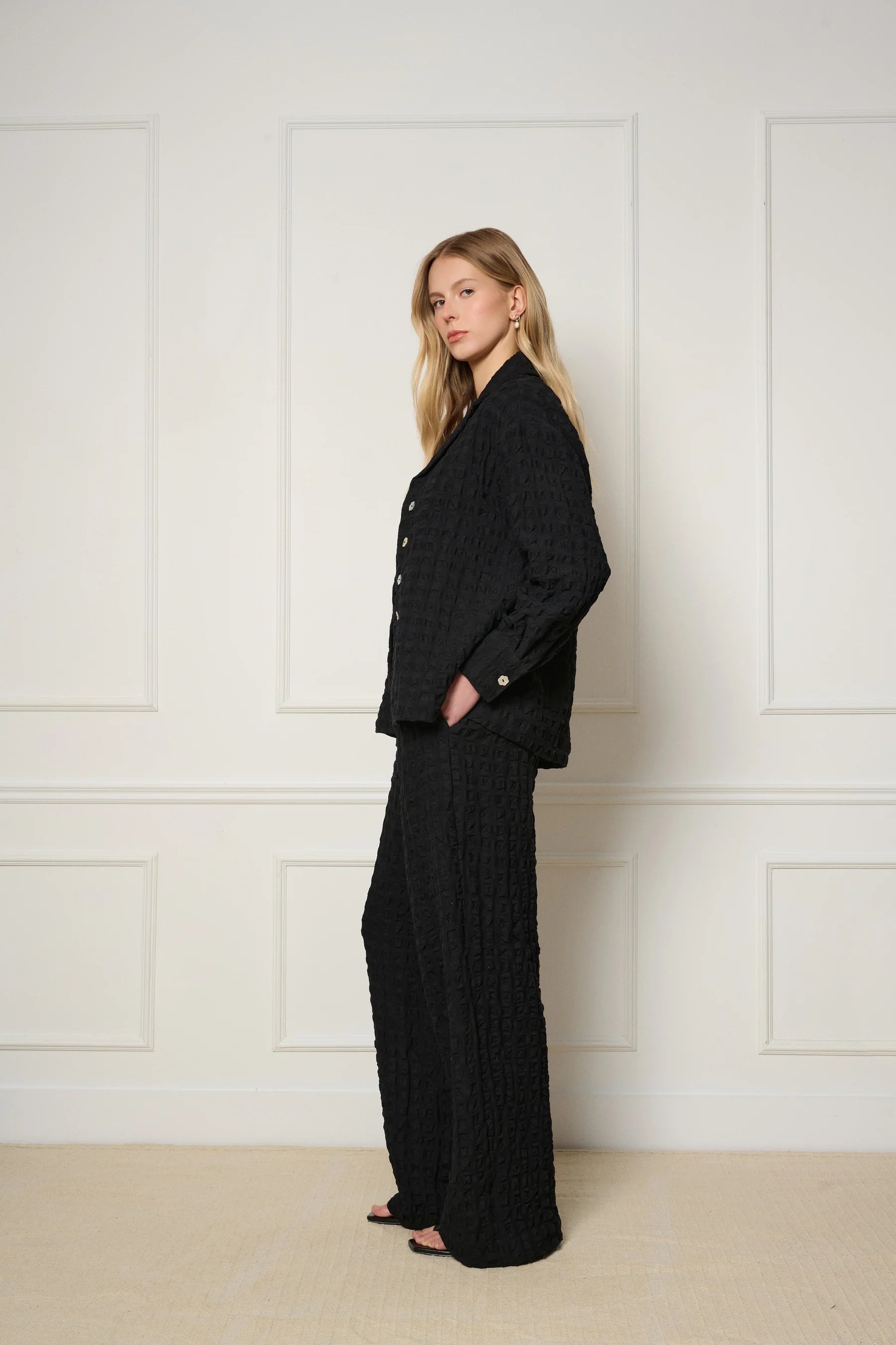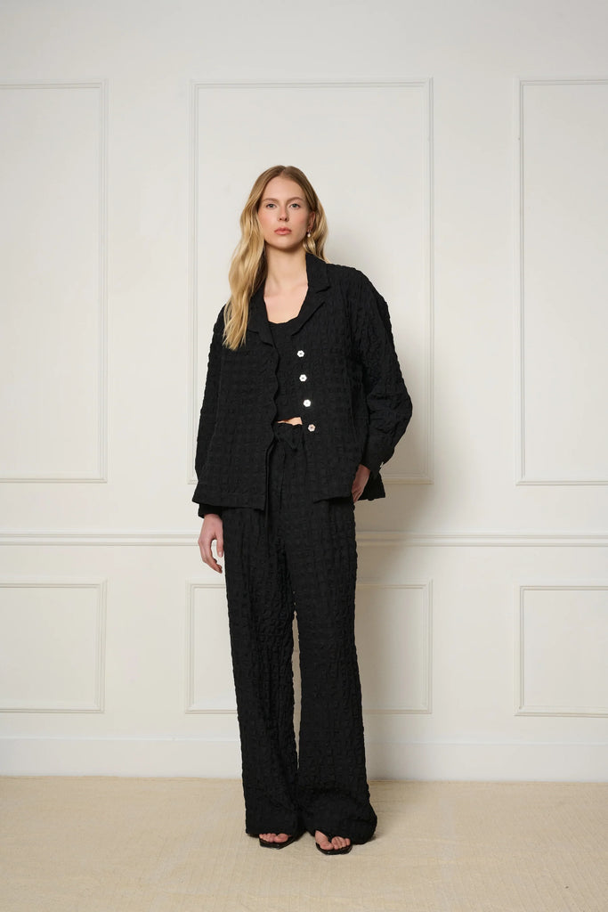 With its relaxed fit and sculptural silhouette, the Bohol Jacket is a go-to piece for any occasion. Customers love collecting multiple colors, making it a travel-ready set for an elevated look wherever they go.