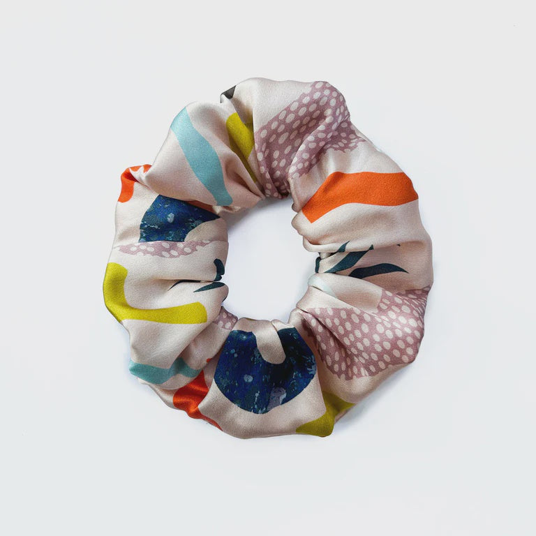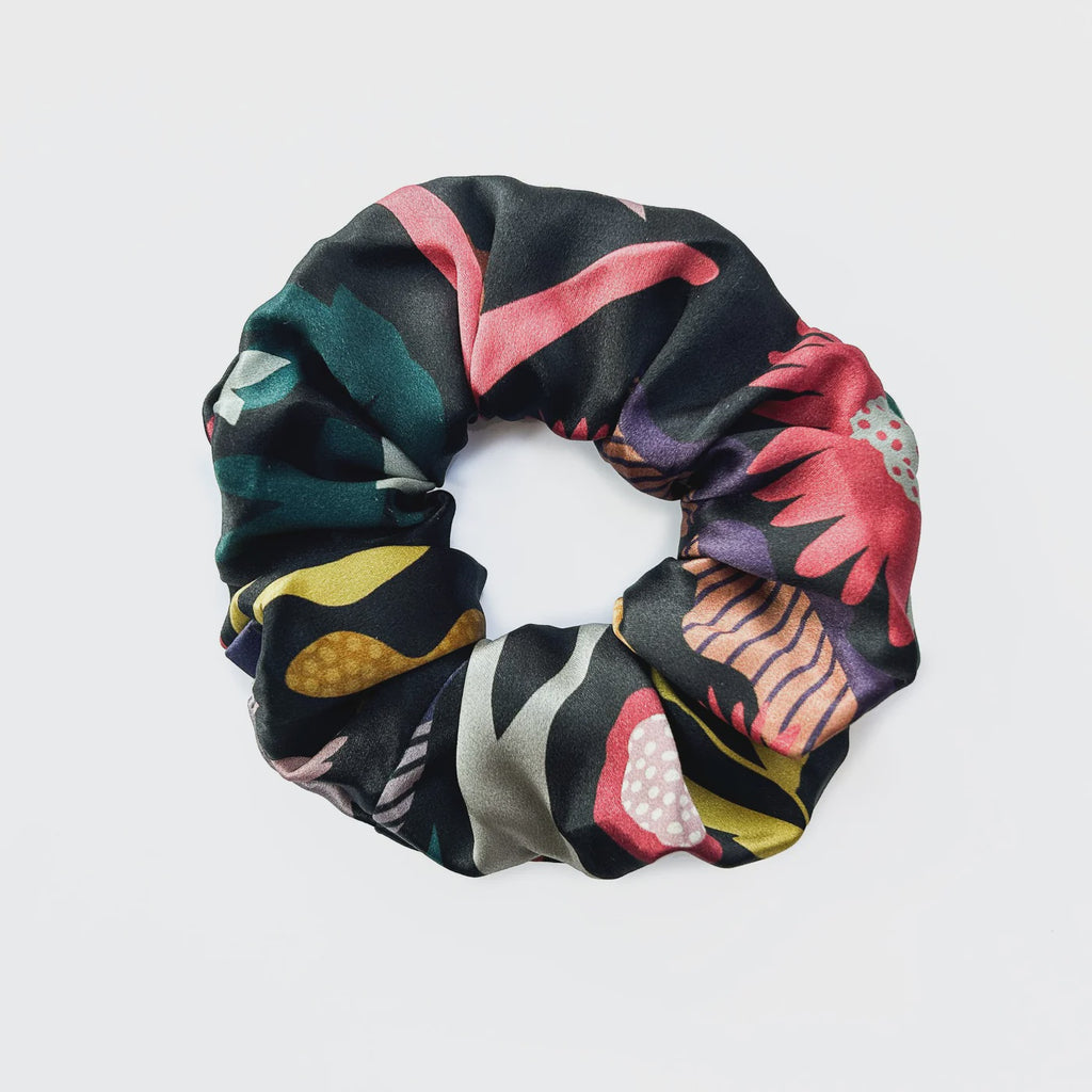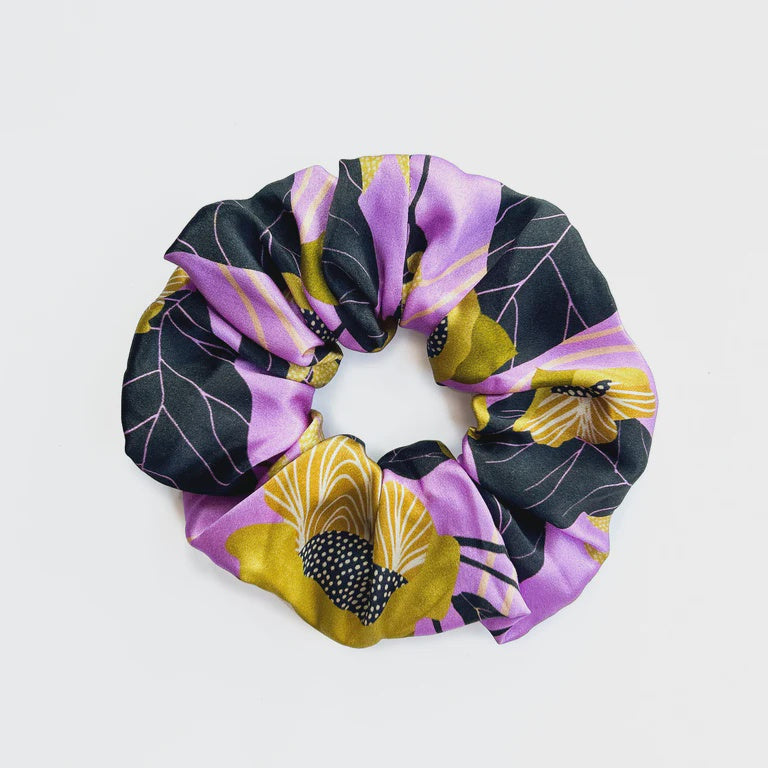 Silk Scrunchie - Rosie's Garden - Lavender/Dark Navy