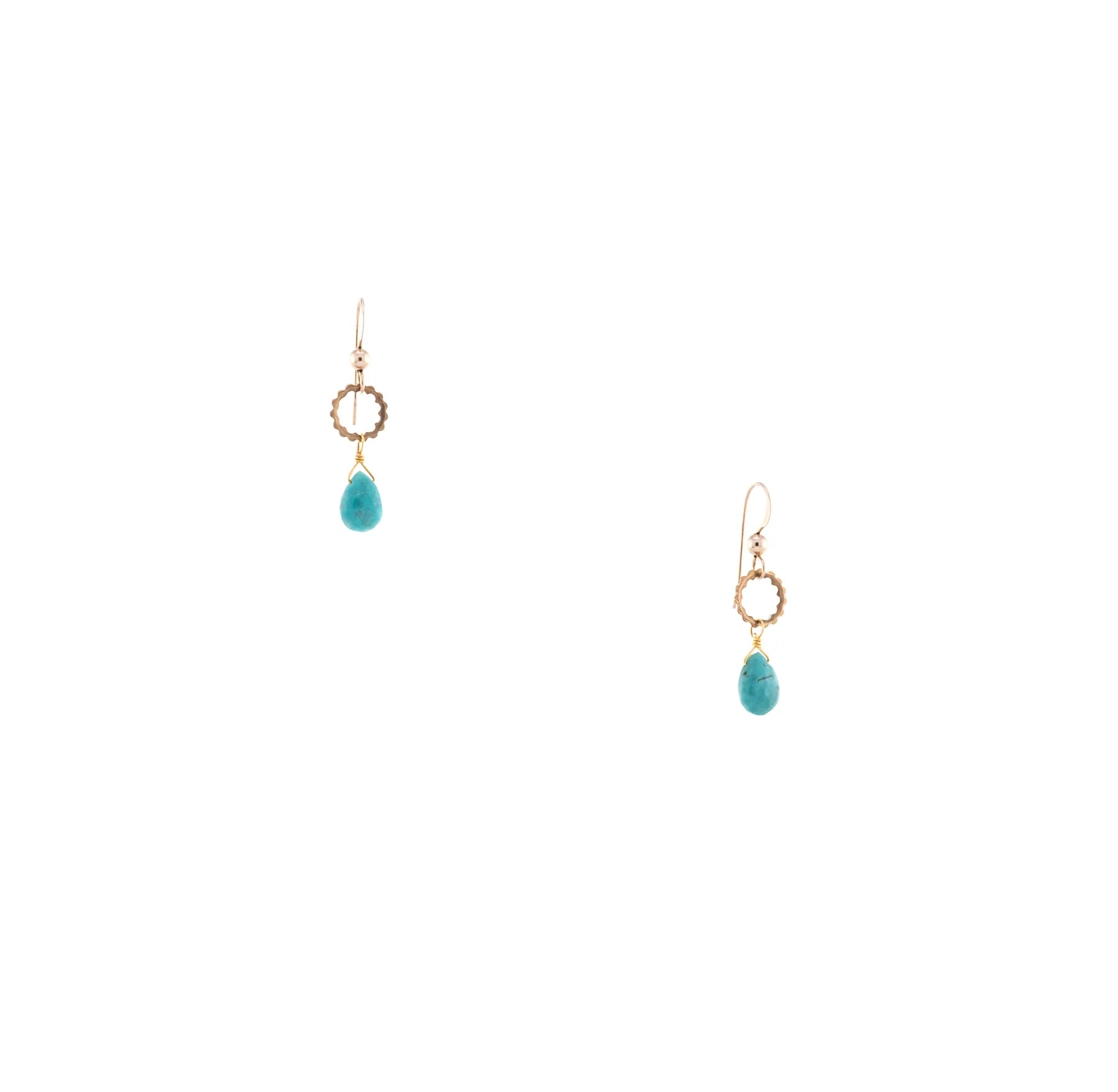 Perfect for everyday wear, the Sidra Earrings feature recycled vintage brass textured rings with a Turquoise drop.