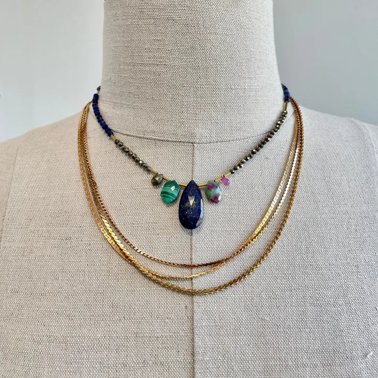 Every collection, we put together a layered chain necklace featuring some of our favourite vintage chains of the season. Our Mixed Chain Necklace offers a little bit of sparkle and texture to any necklace stack.