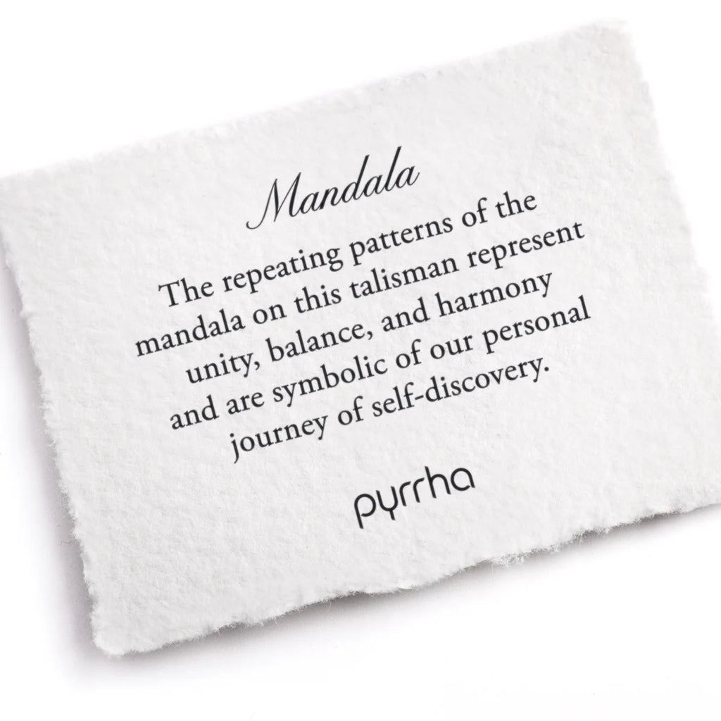 The repeating patterns of the mandala on this talisman represent unity, balance, and harmony and are symbolic of our personal journey of self-discovery.