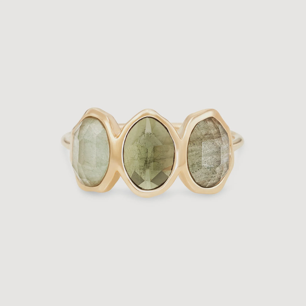 Labradorite Diamond Mood Ring - 14K Yellow Gold
