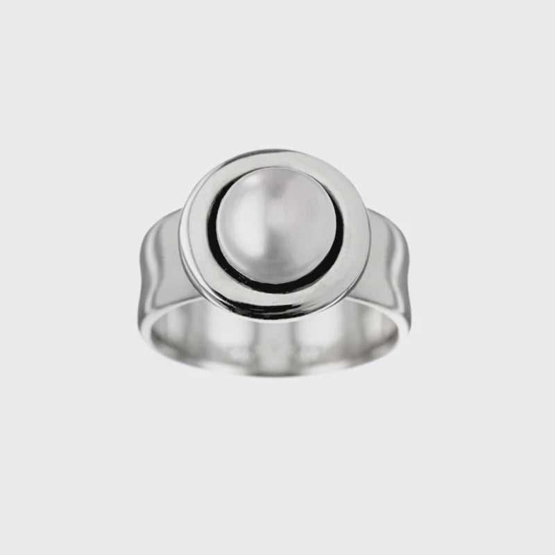 Matsu's Moondrop sterling silver ring with White Pearl.