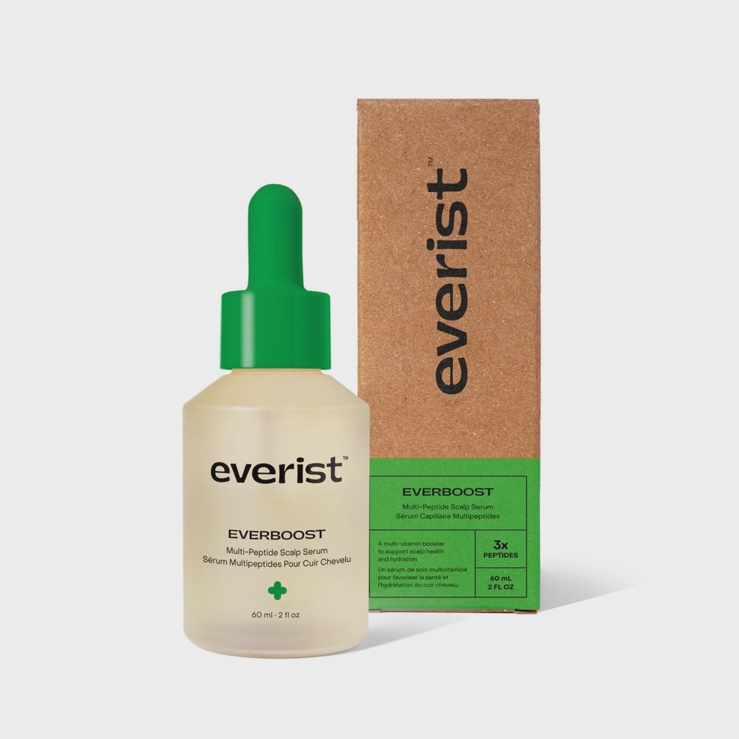 You're good to grow with this multi-peptide scalp serum. Designed to transform brittle, dry, and thinning hair, this concentrated booster functions like a fertilizer for your scalp. Powered by three potent peptides, post-biotics and caffeine, EverBoost is proven to activate 12 different genes associated with hair growth, outperforming both rosemary oil and the leading hair growth active*.