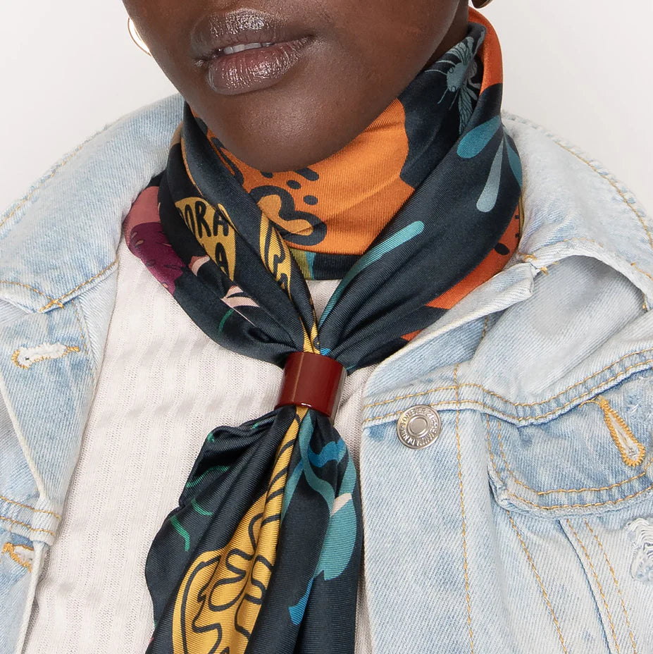 Add a ton of possibilities for styling your Dora Nola scarf with this scarf ring. Ideal to secure your scarf around your neck and add a touch of interest to your look, this piece is crafted in salvaged horn by artisans in Vietnam.