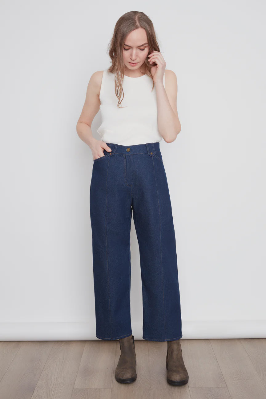 At the request of our customers, we created a straight-leg denim style that naturally follows the leg. The cutouts in the front and back lengthen the leg and structure the silhouette. The new denim is feminine and understated. Authentic denim.