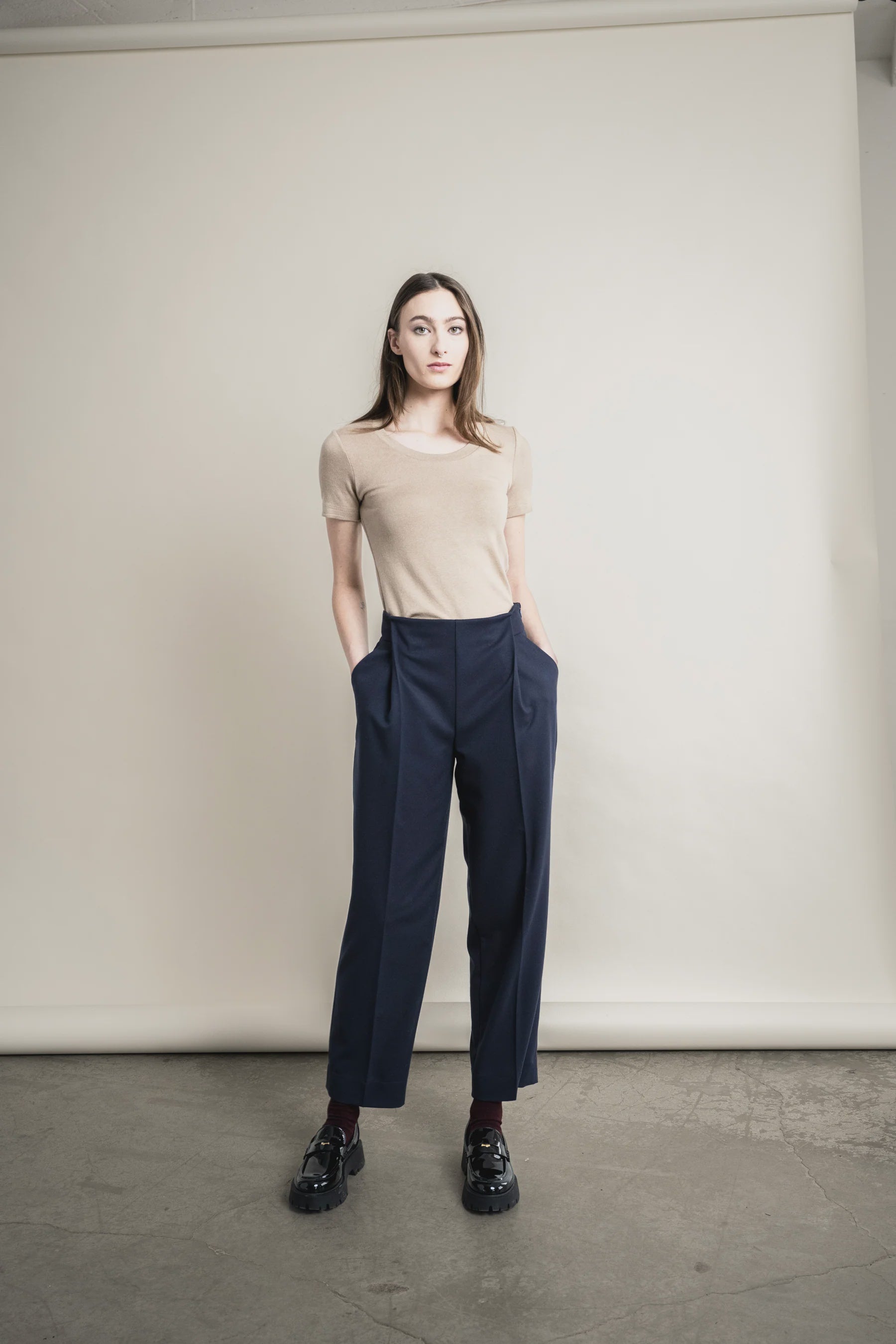 Crafted from a soft, breathable knit blend, the fabric offers a smooth hand, gentle stretch, and fluid drape that flatters the form.