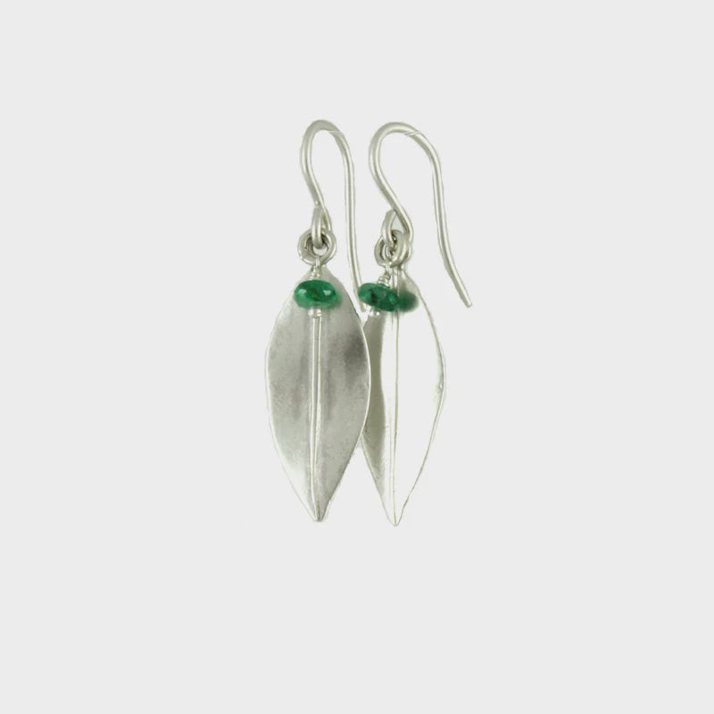Sterling silver willow leaf with natural emerald bead accent.