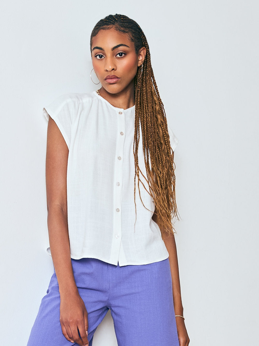 Campbell Button Up Top - Chalk