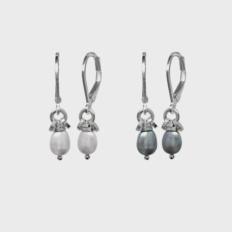 EMisc - Oval Grey Pearl Fringe Earrings