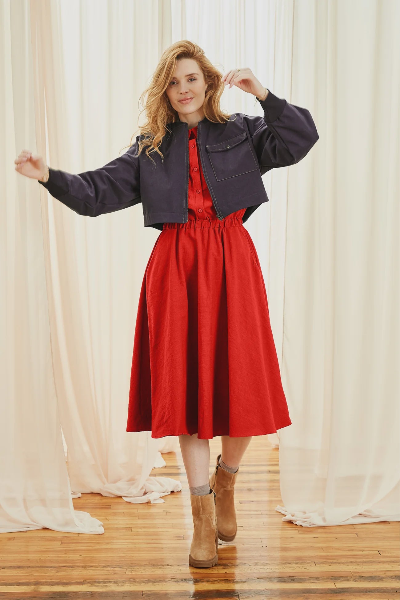 Add a relaxed and confident style to any outfit with our LORKA puff-sleeved cropped jacket.