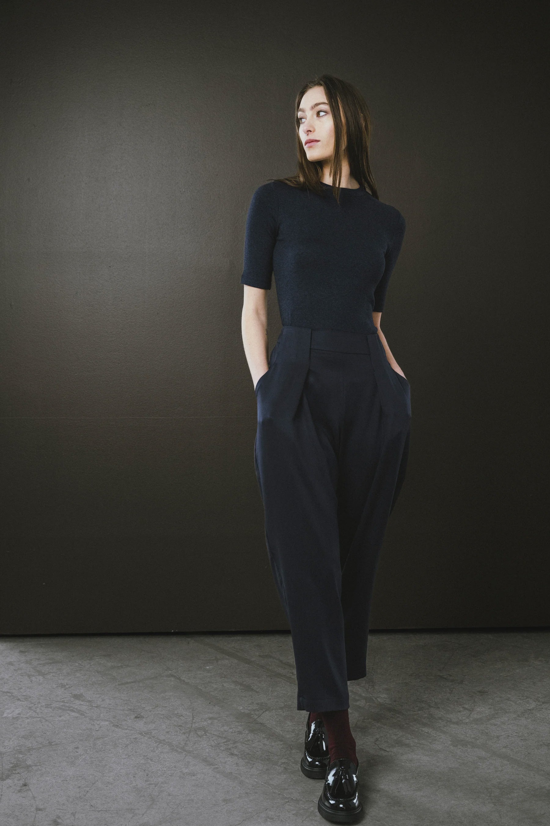 The soft knit blend offers a smooth, breathable feel with gentle stretch. Drapes naturally against the body while maintaining structure.