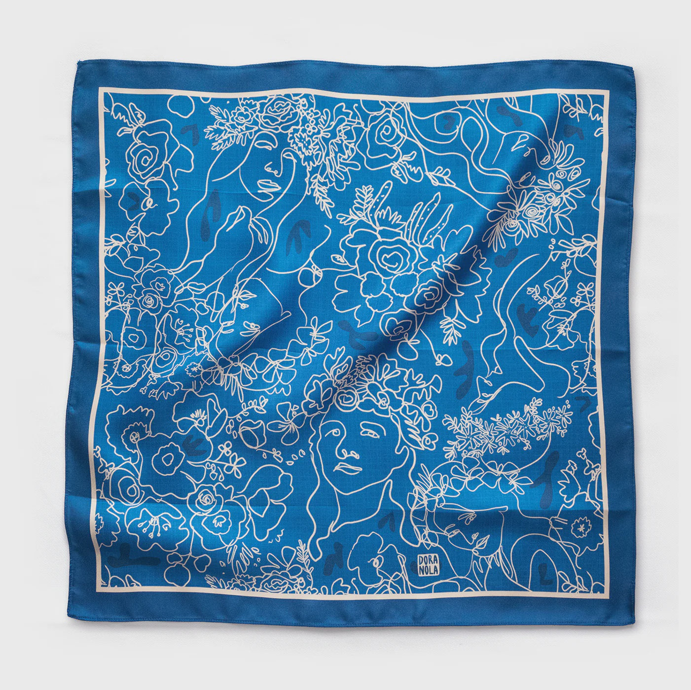 Experience the timeless elegance of the iconic Queen motif, with exquisite floral adornments hand-drawn onto delicate portraits. This luxurious scarf is expertly crafted from 100% silk twill, showcasing a stunning Dora Nola original design.