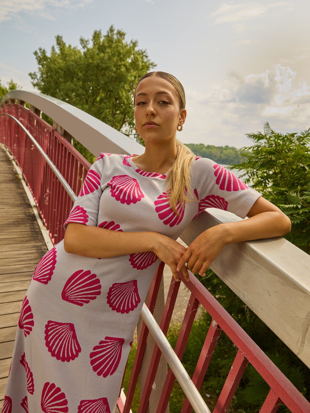 This fluid maxi dress gracefully follows your every move, with an exclusive Montreal-woven seashell motif that evokes summer getaways and the gentle lapping of waves. Perfect for a casual summer wedding or a fun evening out, it combines comfort with impeccable drape and timeless style.