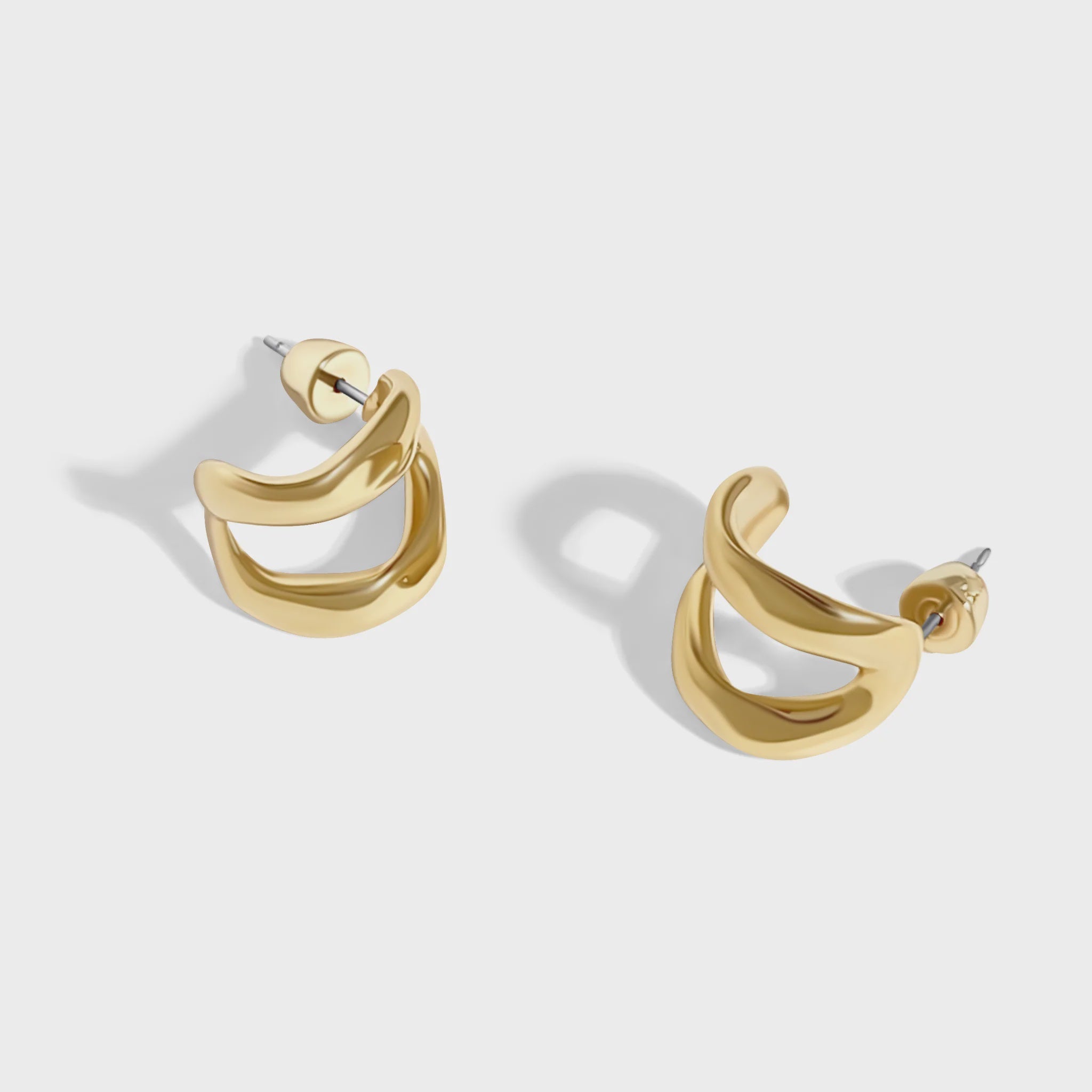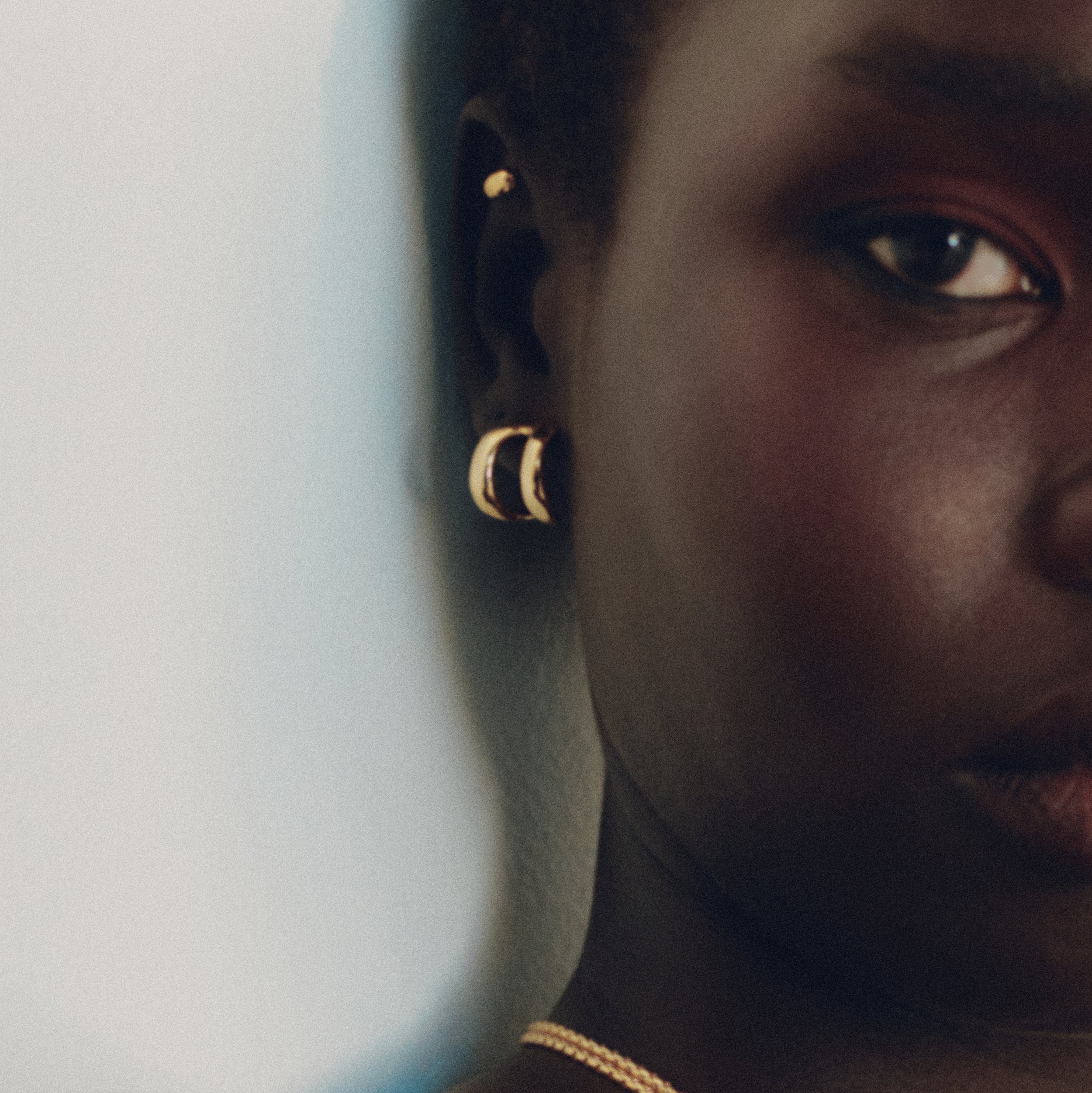 Sculptural shine in a perfectly compact form. These mirror-polished huggies are lightweight, bold, and endlessly wearable. Designed to mimic the look of a double piercing, these modern classics deliver maximum impact with minimal effort.