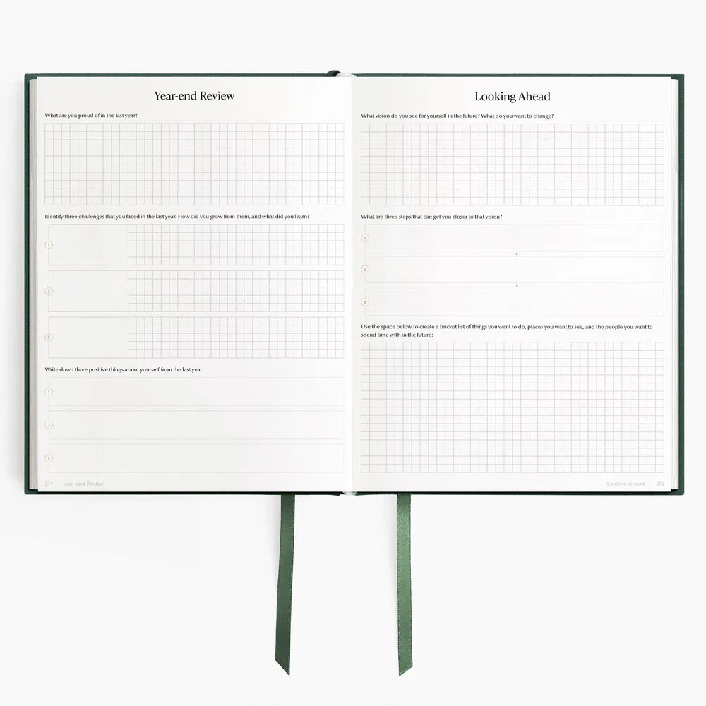 Enjoy additional organization and self-improvement pages such as like monthly and yearly calendars, reflection pages, and personal value journaling exercises.